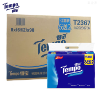 Tempo得宝抽纸T2367 4层家用纸巾 90抽/包 无香软抽面巾纸 8包/提*8提/箱 整箱64包